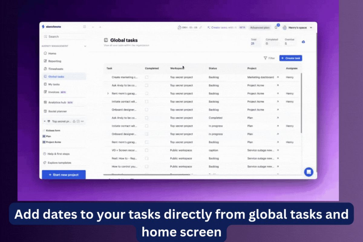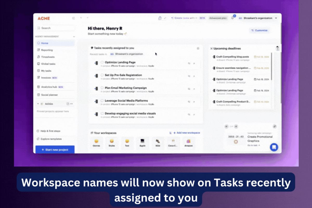 Tracking where your tasks belong just became simpler. You’ll now be able to see **which workspace and project** a task assigned to you is part of, directly on the home page, on the Tasks assigned to you widget. A huge thanks to **Indifluence**, a Sketchnote power user agency, for suggesting this awesome feature!